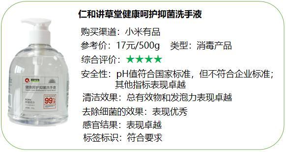 ①6款抗(抑)菌洗手液中,標(biāo)稱“仁和講草堂健康呵護(hù)抑菌洗手液”的產(chǎn)品pH值不符合企業(yè)標(biāo)識(shí)的執(zhí)行標(biāo)準(zhǔn)要求。