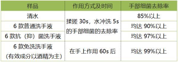 ①當(dāng)手部沾染大量外來(lái)細(xì)菌時(shí),總體來(lái)說(shuō),抗(抑)菌洗手液比普通洗手液更能有去除手部細(xì)菌。使用清水或普通洗手液均能有去除一定的手部細(xì)菌。此外,免洗洗手液的去除細(xì)菌果好。