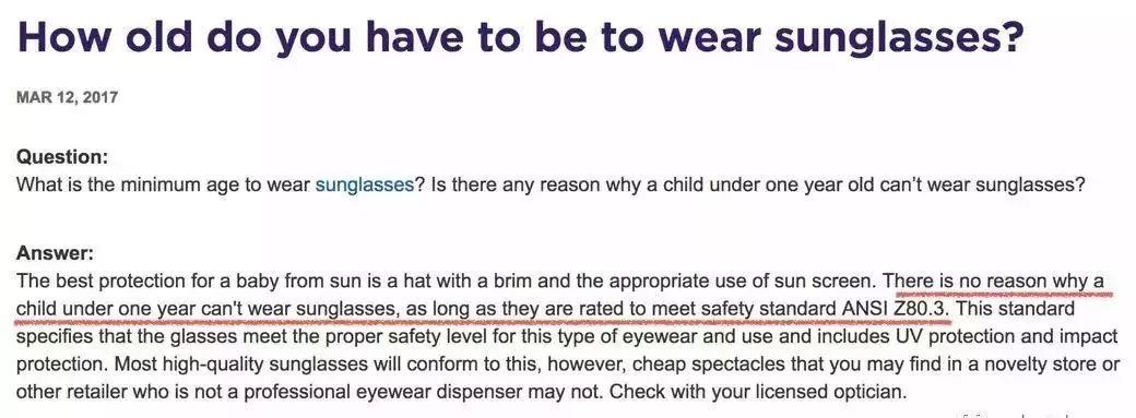 來看看國(guó)外一些相關(guān)的機(jī)構(gòu)對(duì)嬰幼兒佩戴太陽眼鏡的建議: