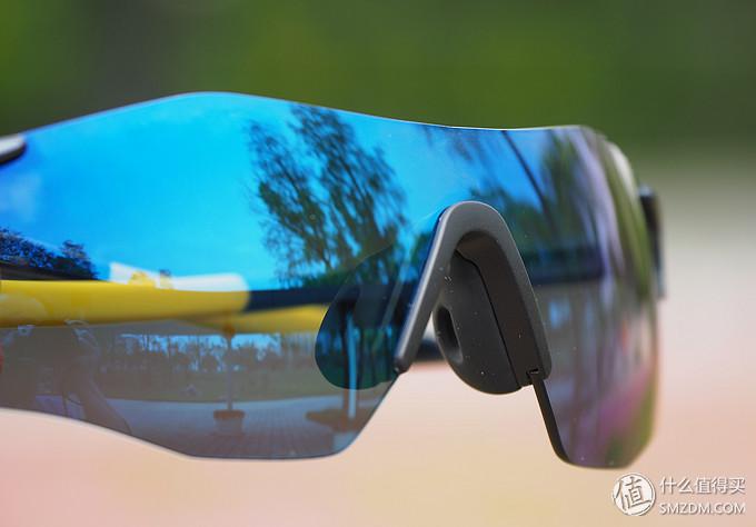 首先是佩戴。此款運(yùn)動太陽鏡具有一定的弧度,能很好的貼合面部,直觀感受來說就是佩戴感舒適不夾頭不夾鼻,而且頭部隨意甩動也不會松脫掉落眼鏡,運(yùn)動時(shí)可以放心使用。藍(lán)色的鍍膜看著十分的炫酷,運(yùn)動感外觀的同時(shí)也讓它足夠時(shí)尚。(就問模特酷不酷?帥不帥? ) ▼