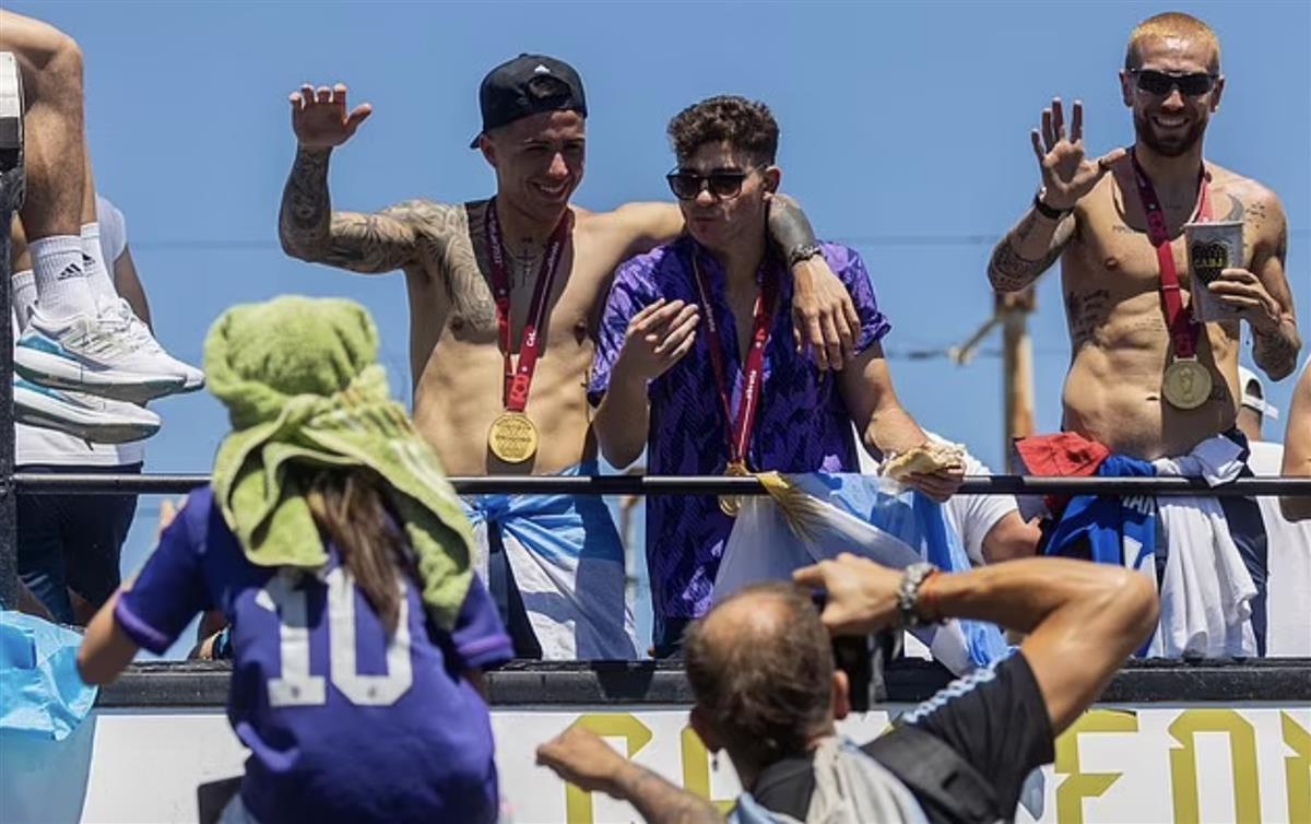 在周二的勝利大游行中,首都有400萬人到現(xiàn)場慶祝。當天,阿根廷隊的球員們原本要乘坐敞篷巴士沿街游行,行至一半時由于現(xiàn)場人太多,不得不提前撤離。一名鐵桿球迷甚至試圖從高架橋跳到敞篷巴士上,結果直接掉落了下來。