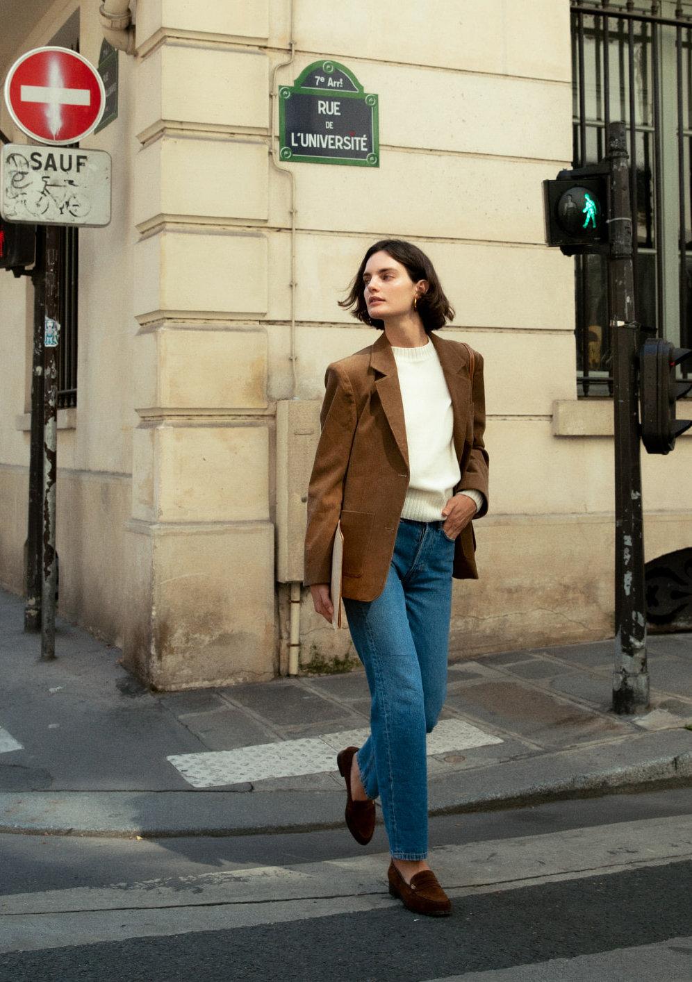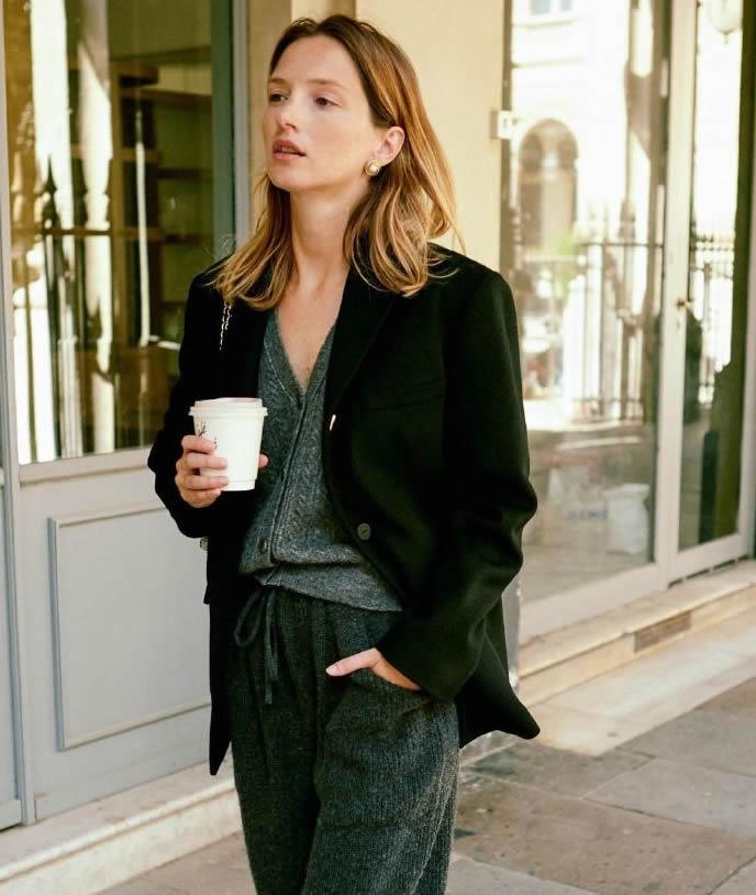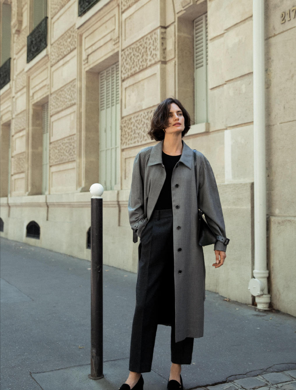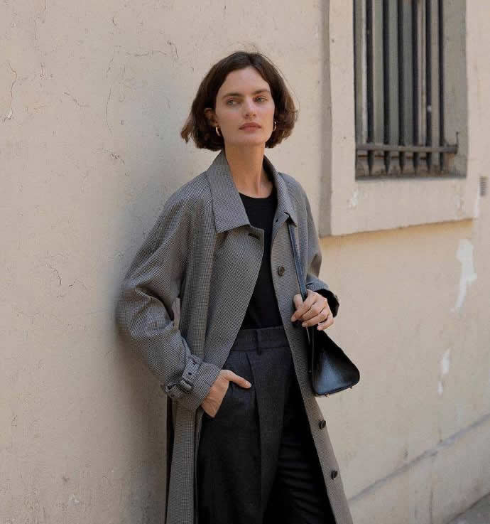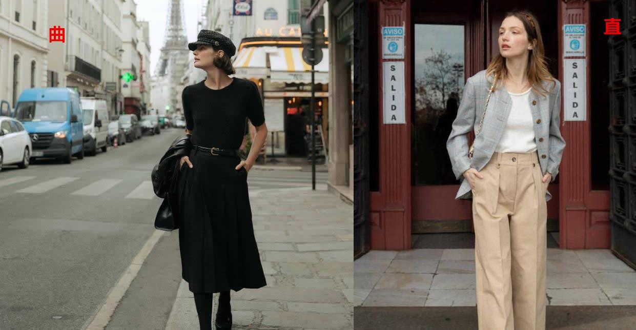 那么,問題來(lái)了:法式風(fēng)的中性色,與職場(chǎng)通勤風(fēng)的中性色有什么不同?答案是:直曲線條廓形的區(qū)別。