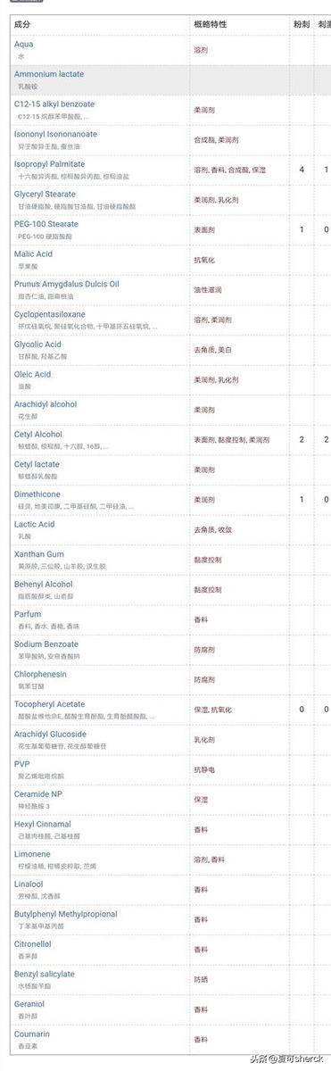 稍微有點(diǎn)那啥的就是防腐劑是甲醛釋放體加鹵代型,這兩個(gè)可能刺激多些。不過身體乳,身體上反應(yīng)應(yīng)該不大。建議者慎!