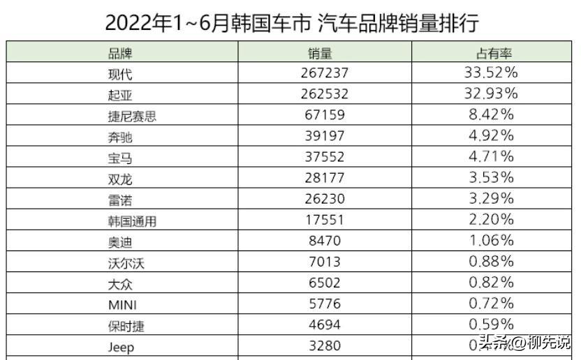 下面依據(jù)機構(gòu)整理出來的數(shù)據(jù),來了解下韓國汽車市場情況,看看韓國消費者到底喜歡什么汽車品牌。2022年上半年,韓國車市汽車品牌銷量排行榜第14名是Jeep,市占率0.41%。Jeep汽車品牌創(chuàng)立81年時間,被不少人視為SUV的代名詞。品牌堅持磨礪越野基因,憑借骨子里的自由、探索、本真、激情,帶領(lǐng)人們共同追尋對世界純粹的熱愛;韓國車市汽車品牌銷量排行榜第13名是保時捷,市占率0.59%。