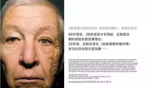 左臉長期接受左邊車窗的紫外線照射,衰老程度遠遠大于右臉,看左臉說是老了右臉20歲都不過分!