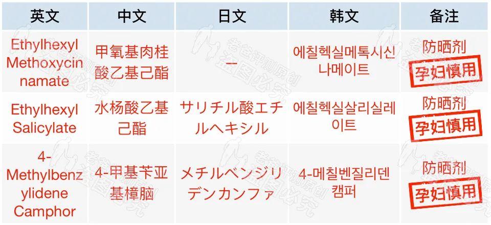 這里列了幾個(gè)孕婦慎用的防曬劑,準(zhǔn)媽媽們選購(gòu)防曬產(chǎn)品時(shí)可作為參考。