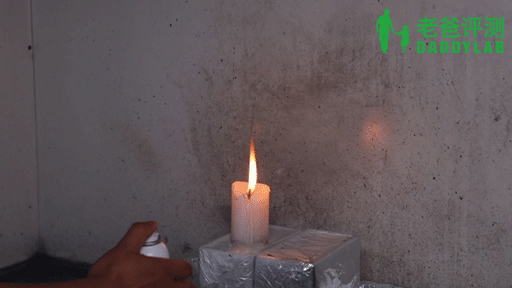 固定火源(蠟燭),點(diǎn)燃火源,手持防曬噴霧分別以 75cm、15cm 的距離噴向火源,讓噴霧通過(guò)火焰的上半部,觀察噴霧是否被點(diǎn)燃。
