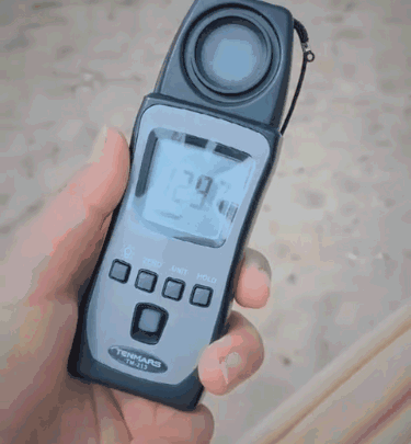 實際防曬果如何?在大太陽底下,紫外線的指數(shù)顯示為1330,把素湃防曬衣?lián)踉谧贤饩€測試儀上方,數(shù)值很快就變?yōu)?了,把紫外線都擋在外面了。