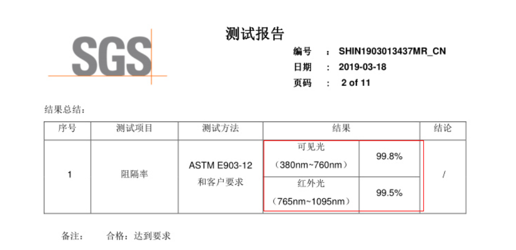 對可見光和紅外線的阻隔率,均超過了95%,其防曬果妥妥的,在陽光下放心地穿。