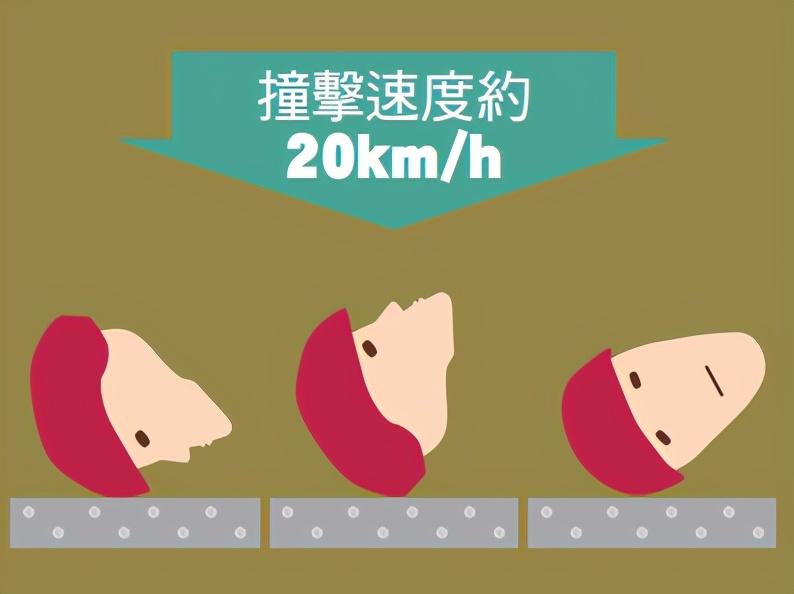 首3個撞擊以頸椎與水平線成25度角,撞向頭部的正前方、后方及側(cè)面,撞擊速度約為20km/h。