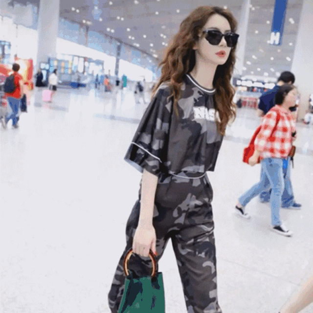 圖案T恤搭配休閑褲很有中性氣息,配上酷酷的墨鏡更加帥氣。