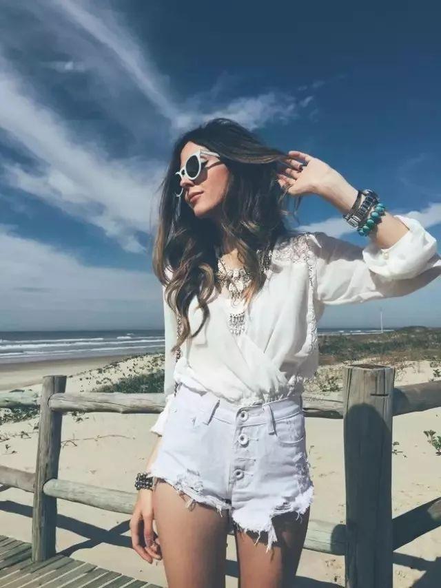 白襯衫、短褲本來(lái)就是十分美好的夏日單品,將上衣扎進(jìn)褲頭,再配上高跟鞋,帶上墨鏡,大面積的亮白色總是能夠讓人眼前一亮,輕松穿出歐美街拍范兒。