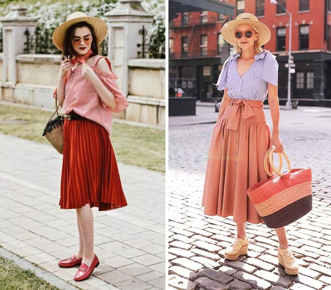 T恤搭配百褶裙本來(lái)就十分優(yōu)雅,隨意搭配一款編織包更顯名媛范兒。