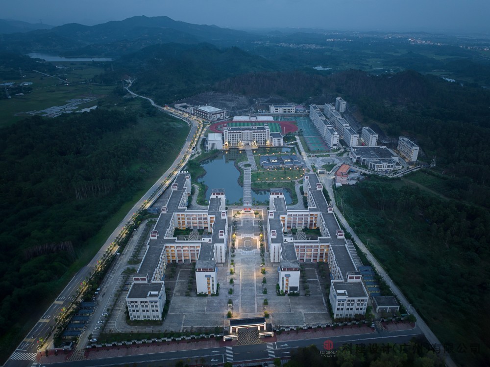 建筑基底面積:37016.1㎡,綠地面積:133688.1㎡。容積率為0.5,建筑密度14.5% ,綠地率52.5%。平均用地面積51.0㎡/人平均校舍面積26.8㎡/人。